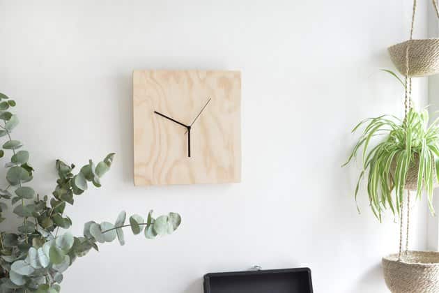 - Une horloge en contreplaqué proposée par « Hunker », à la fois sobre et moderne, qui trouve sa place dans n’importe quelle ambiance.