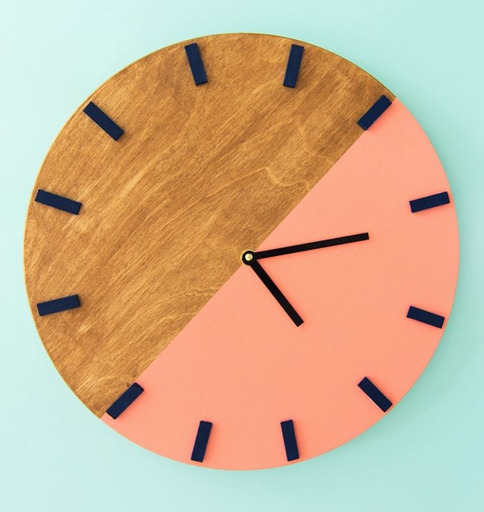 - Du fun sans fausse note : « Dream Green DIY » imagine une horloge façon gâteau, à partir d’un cercle en bois et de sections colorées.
