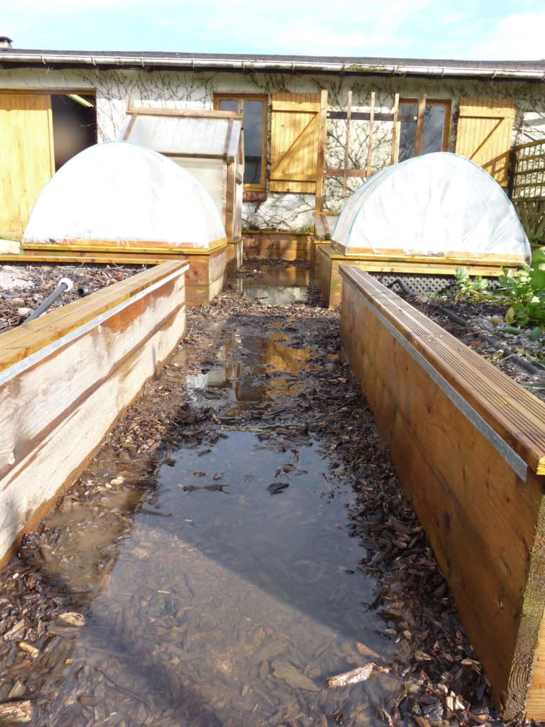L’emplacement du potager, mal choisi, a parfois transformé les allées en ruisseaux lors des fortes pluies.